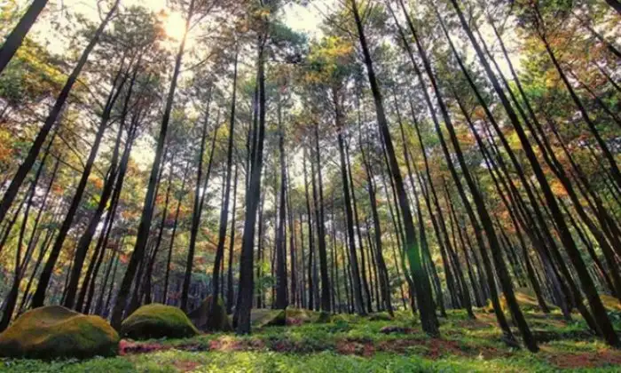 Nikmati Kesejukan Alami dan Suasana Tenang di Tengah Hutan Pinus yang Menjulang Tinggi.