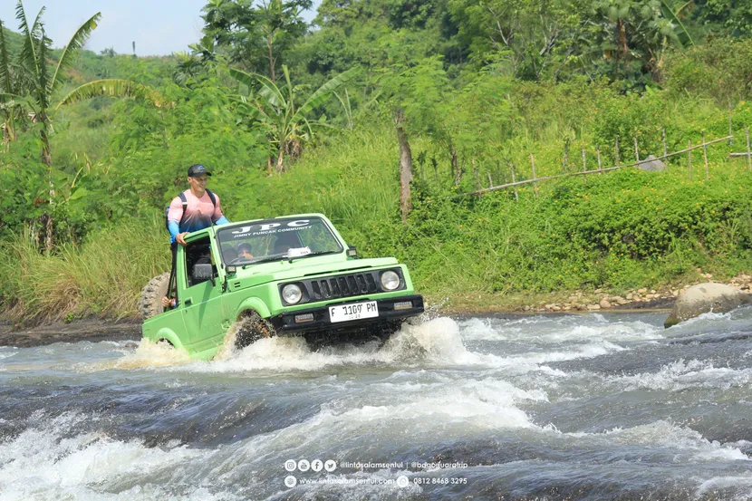 Ingin masuk lebih dalam? Sewa Jeep 4×4 Sentul tipe ini akan membawa Anda melintasi sungai dangkal dan jalur lumpur yang cukup tebal di tengah hutan jati. Sangat disukai oleh para pencinta fotografi alam karena pemandangannya yang sangat liar.